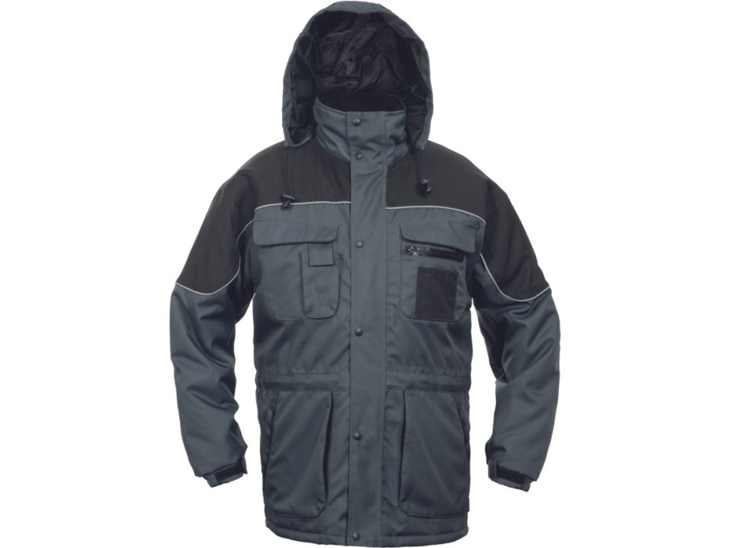 Pánská voděodolná zateplená zimní bunda s kapucí v límci. 2 boční kapsy, 2 multifunkční náprsní kapsy. Nastavitelná šířka manžet rukávů pomocí suchého zipu. Reflexní doplňky.
